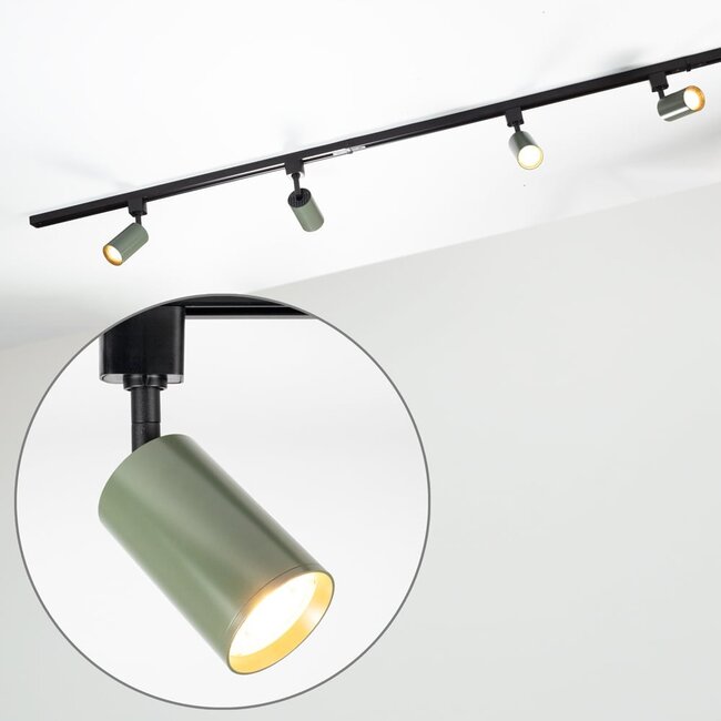 Chcesz wyposażyć swój nowoczesny salon lub kuchnię w eleganckie oświetlenie w wielu miejscach? W takim razie Romain to dobry wybór. Romain to szaro-zielony reflektor szynowy z czarną podstawą, który dobrze komponuje się w spokojnym otoczeniu. Wykorzystaj system szynowy, aby stworzyć równomierne oświetlenie w całym domu lub zapewnić więcej światła w jednym kącie. Zaletą tego zestawu jest to, że jest to system modułowy. Reflektory można zamocować w dowolnym miejscu na szynach.