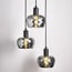 Trzy szklane kule Reno przypominają lata 70. To, w połączeniu z czarnym matowym kolorem, sprawia, że lampa wisząca doskonale pasuje zarówno do wnętrz w stylu retro, jak i nowoczesnych. Przydymione, szare szkło tworzy zabawny efekt świetlny. Ta lampa wisząca jest bardzo odpowiednia nad stół, w przedpokoju lub w sypialni.