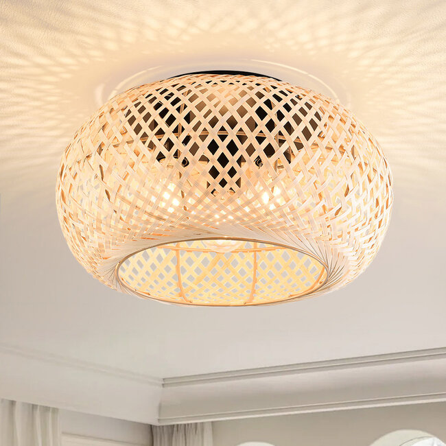 Wyjątkowa lampa sufitowa z piękną grą świateł. To jest Caia. Owalny kształt i perforowany klosz tworzą tańczącą grę świateł na Twoim suficie i ścianach. Klosz jest dostępny w ręcznie wykonanym bambusie lub czarnym metalu, w którym znajdują się trzy źródła światła. Szukasz ciepłego i naturalnego wyglądu? Wybierz bambus. Masz surowe lub industrialne wnętrze? Wtedy metalowy klosz w kolorze czarnym będzie odpowiednim wyborem. Dzięki tym opcjom możesz sam zdecydować, co najlepiej pasuje do Twojego wnętrza.
