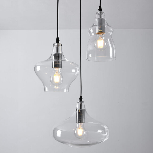 Luksusowe światło w przezroczystym szkle. Ta piękna lampa wisząca wykonana jest z żelaza i przezroczystego szkła. Szklane lampy powracają do łask w nowoczesnym stylu wnętrz i są cenione za swój dekoracyjny efekt. Trinidad to wyjątkowa lampa wisząca, która w nowoczesnym designie przywraca pełne, retro kształty tradycyjnych lamp, łącząc eleganckie przezroczyste szkło z surowym żelazem w luksusowej oprawie.