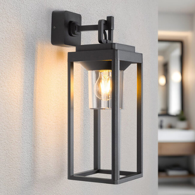 Ten stylowy kinkiet nada Twojej łazience elegancki i nowoczesny wygląd. Otwarta, antracytowa rama w połączeniu z przezroczystym kloszem z poliwęglanu wokół źródła światła łączy elegancki design z subtelnym industrialnym akcentem. Doskonały jako nastrojowe oświetlenie obok lustra lub na ścianie akcentowej. Dzięki wodoodpornemu wykończeniu (IP65) kinkiet nadaje się do użytku w wilgotnych pomieszczeniach, takich jak łazienka.