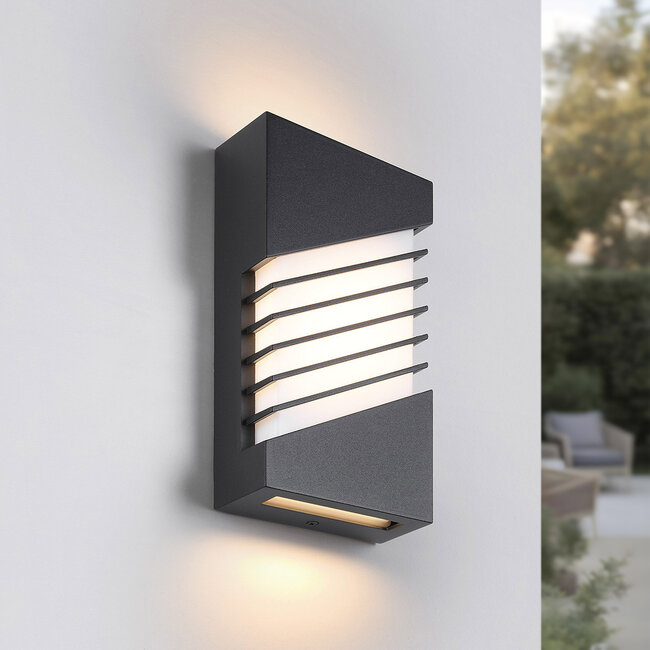 Zawieś ten kinkiet Dane obok swoich drzwi zewnętrznych, a otoczenie natychmiast nabierze bardziej wyrazistego charakteru. Ten nowoczesny kinkiet ma elegancki design, charakteryzujący się ukośnymi promieniami światła, które niejako "leżą" na czarnej aluminiowej podstawie. Dane to lampa, która nie owija w bawełnę i emanuje mocą dzięki swojemu czarnemu kolorowi i czterem pasmom światła. Ciepła biel światła pochodzi z wbudowanego źródła LED o strumieniu światła 1040 lumenów. Wysokie natężenie światła pozwala lampie Dane oświetlić dużą powierzchnię przestrzeni zewnętrznej. Wartość IP44 wskazuje, że lampa jest bryzgoszczelna.