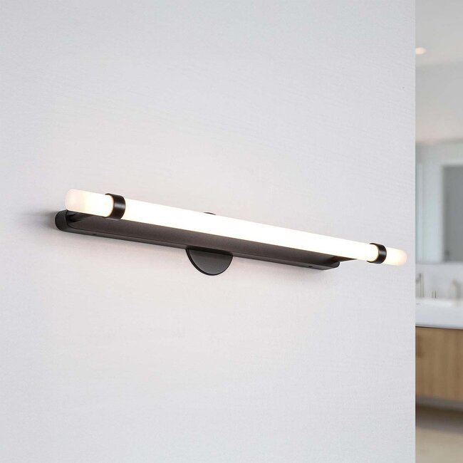 Dodaj ciepła i luksusu swojej łazience dzięki tej eleganckiej czarnej lampie do lustra do montażu ściennego. Smukły, belkowy design i wyrafinowane mocowanie na drążku nadają każdej umywalce nowoczesny wygląd. To, co czyni tę lampę wyjątkową, oprócz jej wyglądu, to możliwość przesuwania płyty z tyłu na całej długości lustra. Delikatne diody LED o temperaturze 2700K, ciepła biel, tworzą nastrojową i relaksującą atmosferę, idealną do odprężającej kąpieli. Ta lampa do lustra to nie tylko stylowy element przyciągający wzrok, ale także niezawodne i funkcjonalne źródło światła.