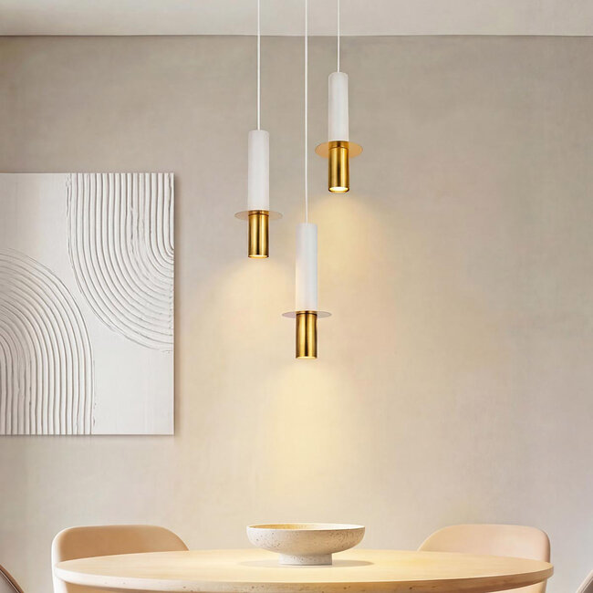 Szukasz nowoczesnej lampy wiszącej z trzema pojedynczymi zwisami? Toine to lampa wisząca, której szukasz. Lampa łączy biel ze złotem, co nadaje jej luksusowy wygląd. Dzięki temu Toine doskonale pasuje zarówno do wnętrz industrialnych, jak i skandynawskich. Ponieważ możesz samodzielnie regulować wysokość zwisów, ta lampa wisząca jest idealna jako oświetlenie nad stołem. Do tej lampy samodzielnie wybierasz źródła światła. Wybierz ciepłe źródła światła i stwórz nastrojową przestrzeń.