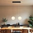 Svea posiada czarną, podłużną płytę sufitową o wymiarach 59 x 6 cm, dzięki czemu dwa kable o długości 190 cm można łatwo skrócić. Szklane kule mają średnicę 20 cm. Zintegrowane diody LED mają temperaturę barwową 2700K (ciepła biel) z funkcją 3-stopniowego ściemniania. Dzięki ściemnialnym diodom LED możesz wybrać strumień światła wynoszący 216, 659 lub 1471 lumenów.