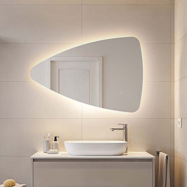 Chcesz nadać swojej łazience nowoczesny i zabawny wygląd? W takim razie to wyjątkowe lustro łazienkowe z oświetleniem to właściwy wybór. Dzięki organicznemu kształtowi i stylowemu podświetleniu tworzy luksusową i nastrojową atmosferę. Dzięki czujnikowi dotykowemu i ściemnialnym diodom LED to lustro łączy design z funkcjonalnością, pasując do każdej łazienki.