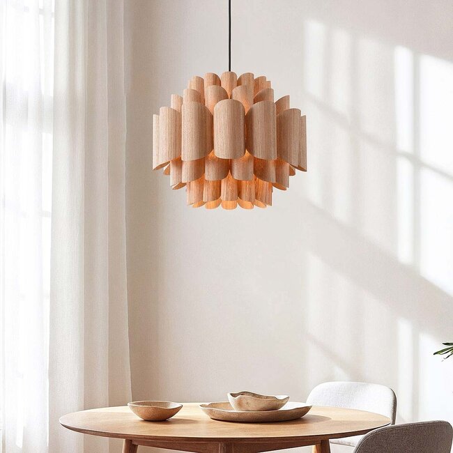 Ta wyjątkowa lampa wisząca z warstwowymi elementami tekstylnymi zapewnia ciepłe światło i rzeźbiarski wygląd. Prawdziwa ozdoba, która wprowadza atmosferę zarówno do nowoczesnych, jak i naturalnych wnętrz. Dzięki oprawce E27 (źródło światła nie jest dołączone) sam decydujesz o wyglądzie, niezależnie od tego, czy wybierzesz ciepłe źródło światła, czy modną żarówkę filamentową.