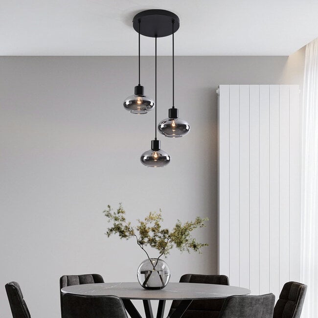 Brakuje Twojemu wnętrzu odrobiny elegancji? Ta lampa wisząca z trzema szklanymi kulami, w kolorze bursztynowym lub przydymionym, zapewnia nastrojowe światło. Trzy owalne kule są zamontowane stopniowo, co nadaje lampie nowoczesny wygląd. Udekoruj lampą pięknie okrągły stół jadalny lub stolik kawowy w salonie. Połącz Vida z dekoracyjnymi źródłami światła LED z żarnikiem (nie są dołączone), aby dostosować lampę do swojego stylu. W ten sposób możesz stworzyć stylową atmosferę dzięki tej lampie wiszącej.
