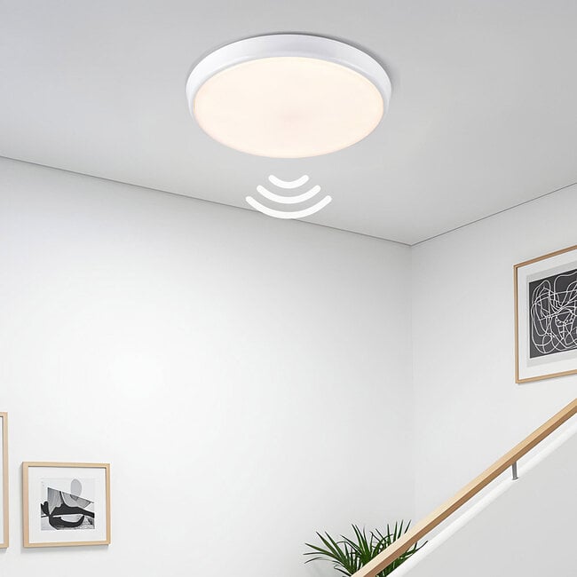 Oprawa sufitowa jest wyposażona w czujnik o zasięgu od 5 do 10 metrów. Czas podtrzymania, czyli czas, przez jaki lampa pozostaje włączona po ostatnim wykryciu ruchu, wynosi 30 sekund.