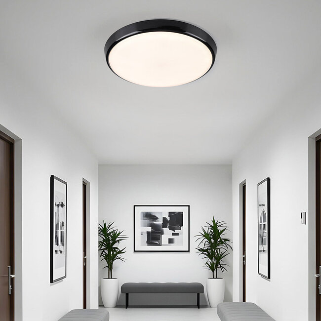 Ta czarna plafoniera z jednostką awaryjną nadaje się do użytku w holach, korytarzach i różnych budynkach. Lampa wyposażona jest w trwałą czarną osłonę z poliwęglanu i ma nowoczesny i elegancki design, który dobrze pasuje do różnorodnych przestrzeni.