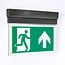 Czarna oprawa posiada 16 diod LED SMD. Ta oprawa jest dostarczana z czterema piktogramami (płytkami poliwęglanowymi), które wskazują następujące kierunki strzałek: lewo, prawo, góra i dół. Piktogramy można umieścić po obu stronach oprawy. Oprawa ma szerokie zastosowanie dzięki praktycznemu kątowi obrotu 90 stopni. Dzięki kątowi obrotu można zamontować oprawę zarówno na suficie, jak i na ścianie. Oprawa posiada przycisk testowy, za pomocą którego można ręcznie sprawdzić, czy akumulator działa. Mamy również dostępny oddzielnie akumulator, który znajduje się w tej oprawie, na wypadek, gdybyś chciał go wymienić w przyszłości.