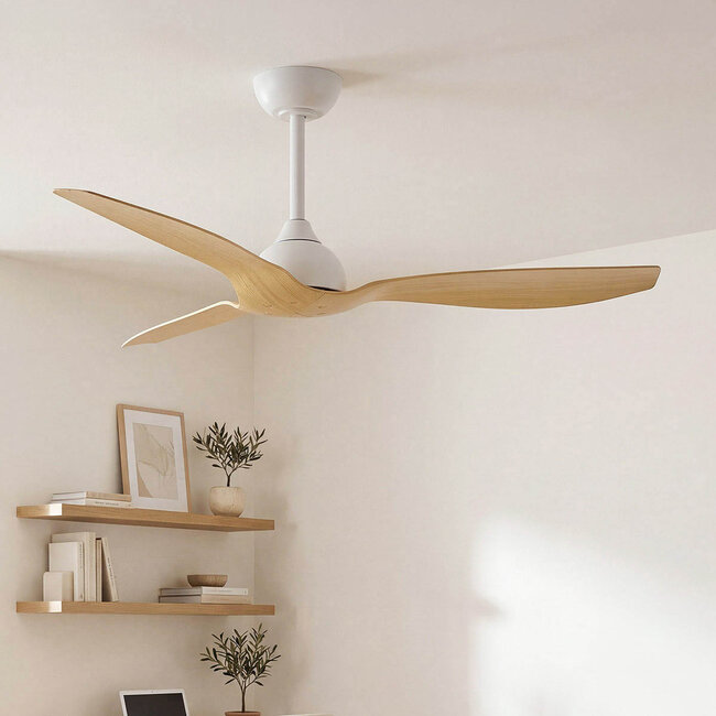 Ten wentylator sufitowy łączy trwałe łopatki ABS ze stylowym wykończeniem z drewna bukowego – ponadczasowy wybór do każdego wnętrza. Jego subtelny design sprawia, że wentylator nie rzuca się od razu w oczy, a jednocześnie możesz cieszyć się szerokimi możliwościami, jakie oferuje.