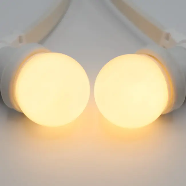 Chcesz dodać więcej atmosfery do swojego ogrodu, imprezy lub lokalu gastronomicznego? Te ciepłe białe zestawy girland świetlnych z lampkami z mlecznobiałym kloszem doskonale nadają się do stworzenia wyjątkowej atmosfery. Wszystkie lampki na tej stronie mają mlecznobiały klosz, co zapewnia piękną, równomierną emisję światła. Ten zestaw jest dostarczany z białą girlandą świetlną. Ponadto ten zestaw doskonale nadaje się do połączenia z naszymi lampionami zewnętrznymi. Sprawdź włącznik zmierzchowy lub inteligentną wtyczkę, aby nie musieć ręcznie włączać ani wyłączać girlandy świetlnej.